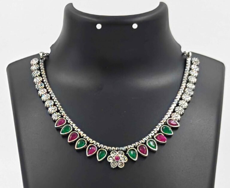 Oxidized Earring – Silver Oxidized – Multicolored stones